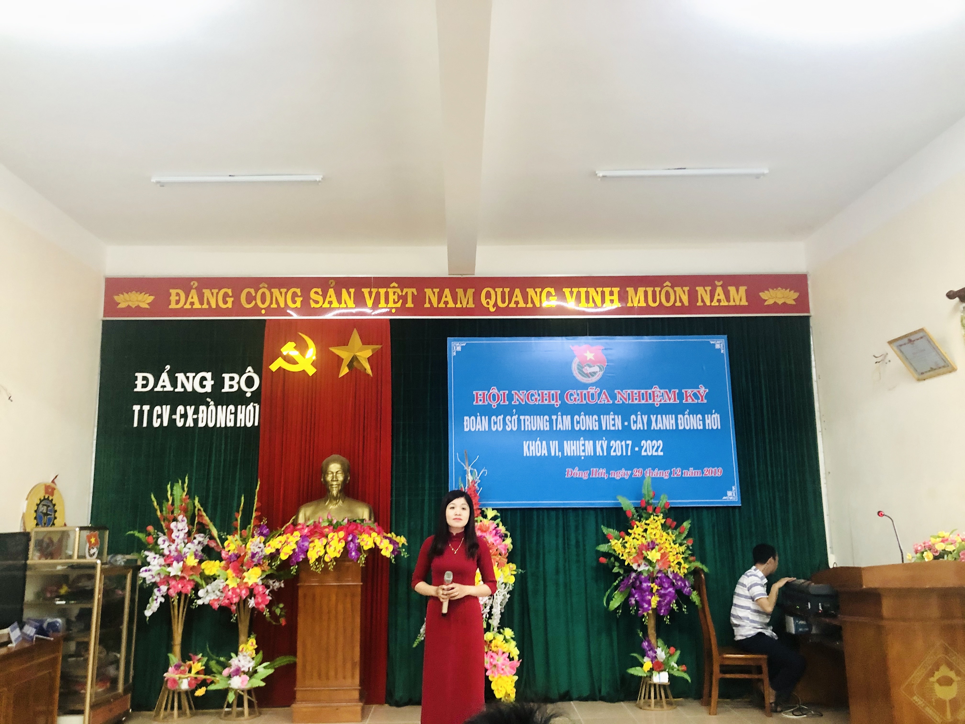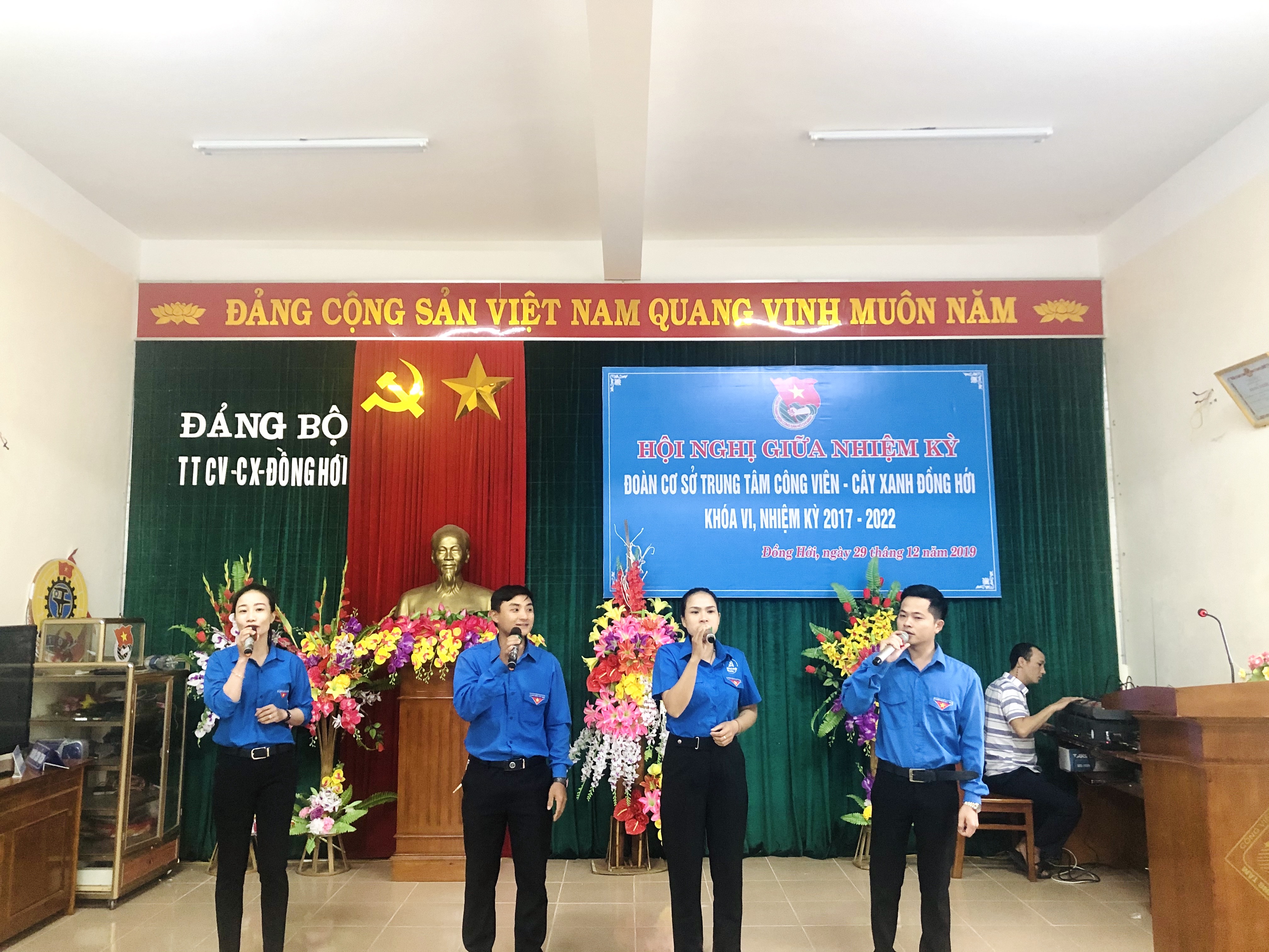 Được sự đồng ý của Đảng ủy, Lãnh đạo Trung tâm, Ban Thường vụ Đoàn cơ sở Trung tâm CV-CX Đồng Hới, sáng ngày 29/12/2019, Đoàn cơ sở Trung tâm Công viên – Cây xanh Đồng Hới đã tổ chức Hội nghị giữa nhiệm kỳ Đoàn cơ sở Trung tâm Công viên – Cây xanh Đồng Hới khóa VI, nhiệm kỳ 2017-2022.